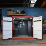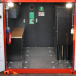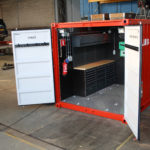 In opdracht van een klant heeft Rovanda een container ingericht om te kunnen functioneren als werkplaats op locatie. Bij de inrichting zijn alle wensen en voorkeuren van de klant meegenomen. Zo zijn er diverse stroompunten gemonteerd, is er optimale (buiten)verlichting gerealiseerd met behulp van o.a. twee LED schijnwerpers en wordt de werkplaats verwarmd door middel van een infraroodkachel. Voor het opbergen van het gereedschap en de overige benodigdheden zijn er diverse (lade)kasten van ingebouwd.